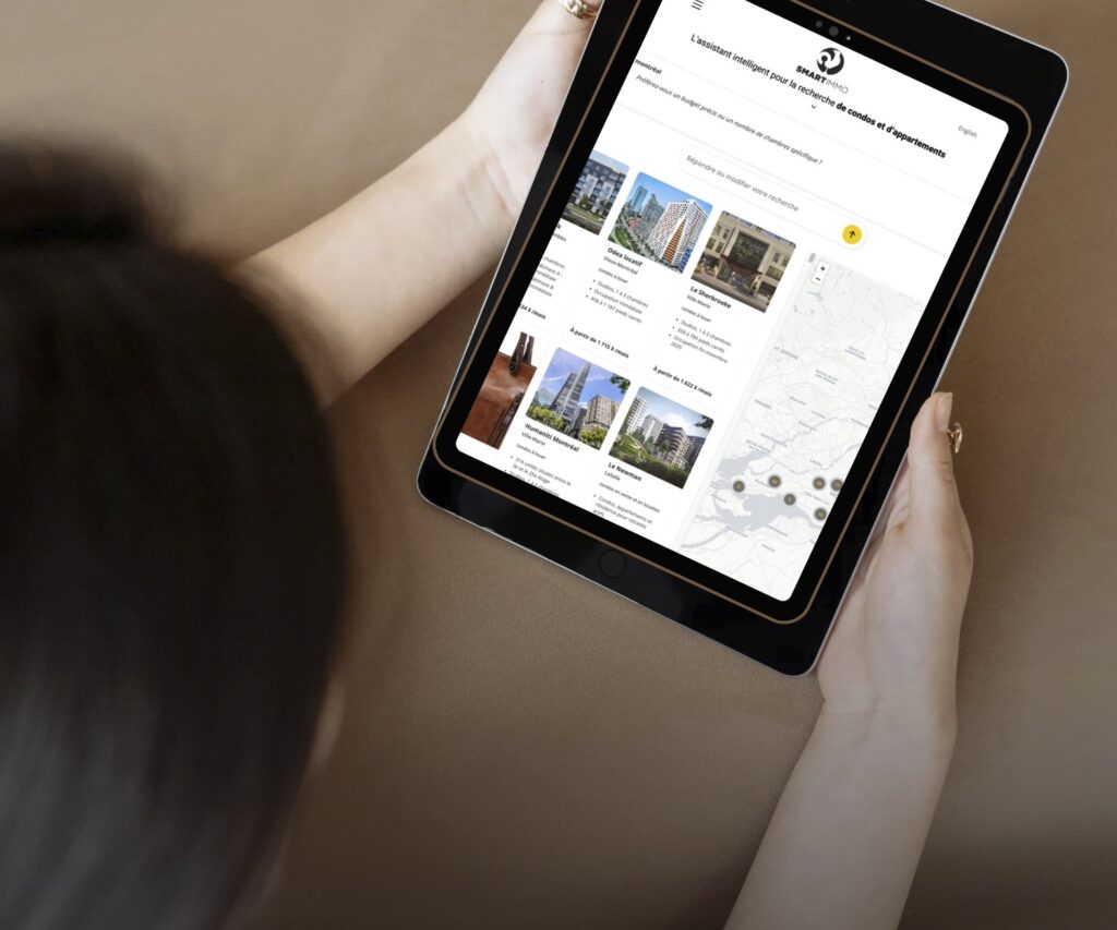 Smart Immo fonctionne comme un assistant virtuel intelligent avec lequel on échange naturellement, un peu comme ChatGPT. En quelques questions ciblées sur la région, le budget ou le type d’habitation, l’outil repère les projets immobiliers les plus pertinents et les affiche instantanément. L’utilisateur peut ensuite affiner les résultats en mentionnant des critères précis : nombre de chambres, présence d’un gym ou d’une piscine intérieure, proximité du métro, stationnement intérieur… Smart Immo s’adapte en temps réel aux demandes, simplifiant chaque étape de la recherche.