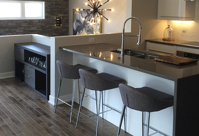 Pour terminer notre tournée, nous avons visité les condos du Groupe William. Design et tendance étaient au rendez-vous. Nous avons particulièrement apprécié l’unité à l’étage du quadruplex, qui avait une allure de loft. Avec ses plafonds hauts et, encore une fois, des spacieuses fenêtres, ces unités donnaient une impression de grandeur. Une chose est sûre, le projet symbiocité est lumineux!